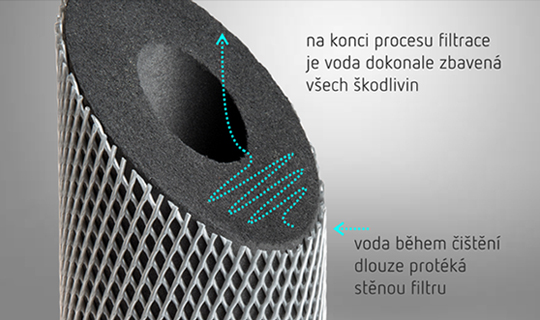 Díky svému patentovanému procesu výroby nanouhlíkový filtr filbec® zaručuje, že všechny póry jsou uvnitř stejně velké a stejnoměrně rozprostřené. Voda tak musí protékat přímo aktivním uhlím, jehož póry jsou ještě zjemněny nanovláknem a díky tomu můžeme garantovat jeho vysoký filtrační výkon.